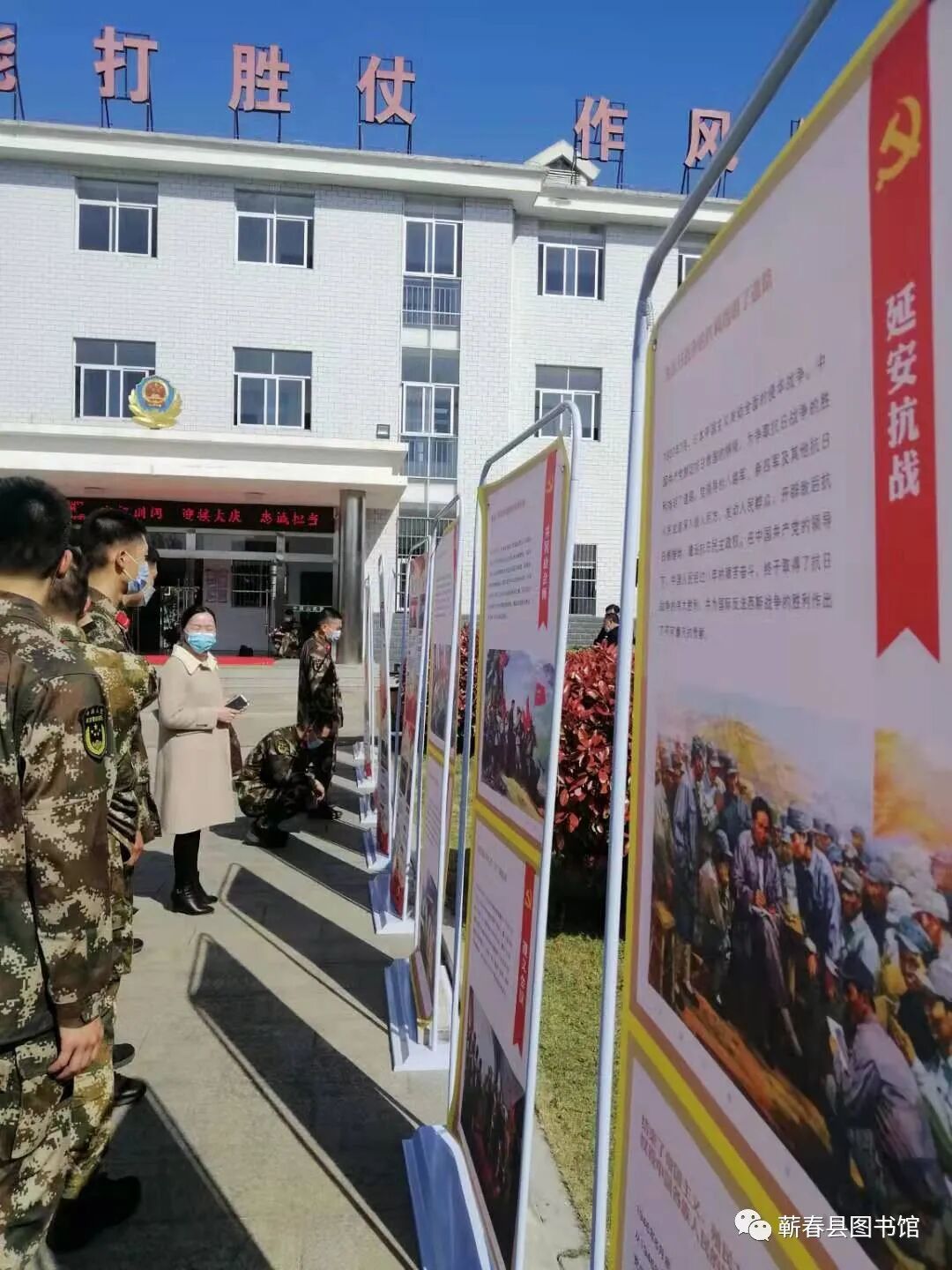 2021年是中国共产党成立100周年。为深入学习领会习近平总书记关于党的历史的重要论述,全面了解中国共产党百年奋斗的光辉历程,讴歌党的丰功伟绩。3月25日下午,蕲春县图书馆荆楚“红色文艺轻骑兵”小分队到县武警中队,举办庆祝建党100周年“光辉历程·伟大成就”党史学习教育主题展览。